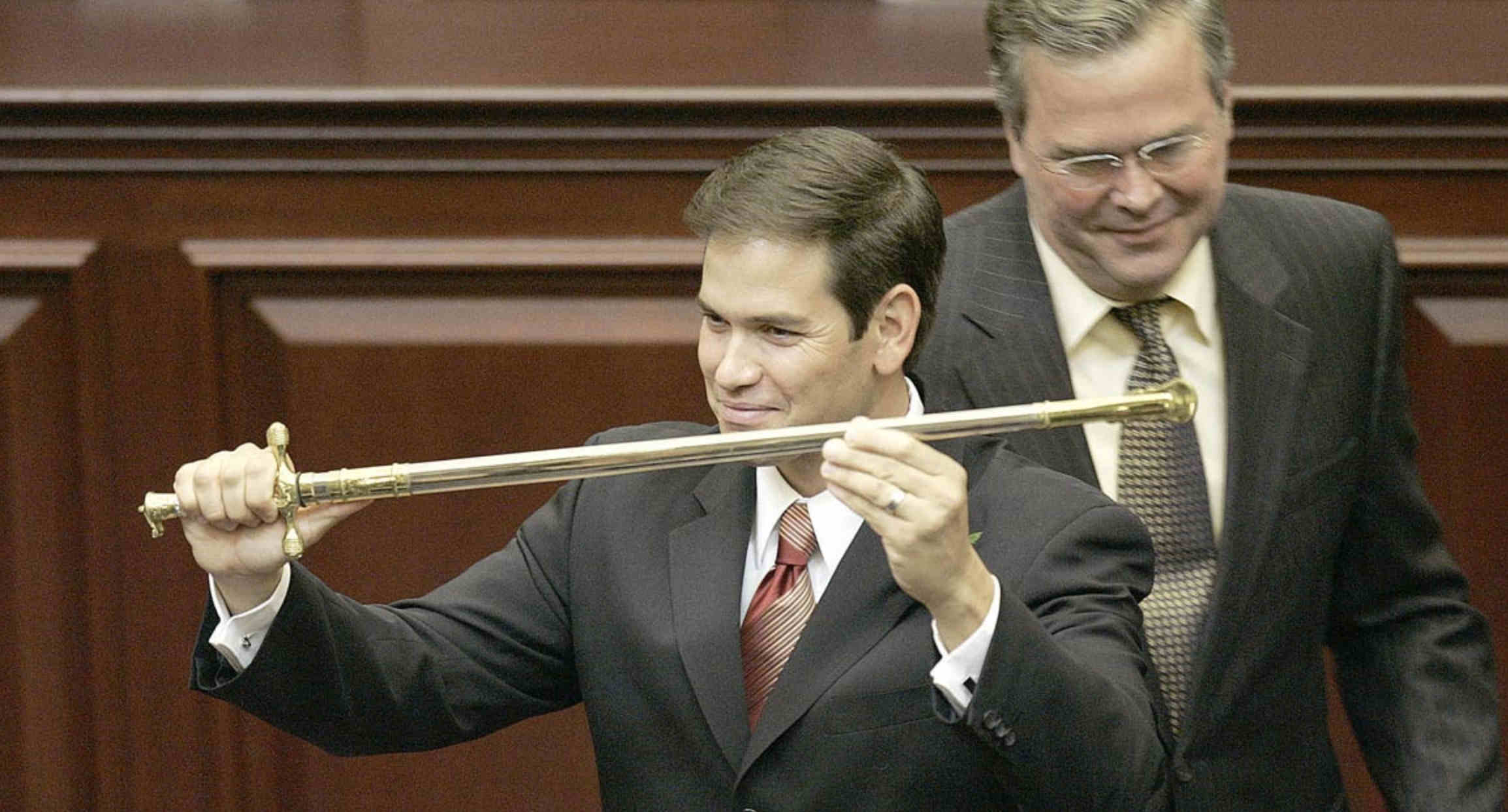 2005年,时任州众议员的鲁比奥,正式就任佛州历史上首位古巴裔众议院议长。他发表了一篇极具感染力的就职演说,直接把杰布讲哭了。